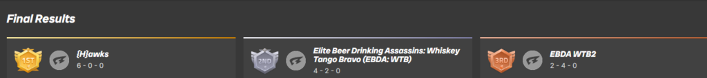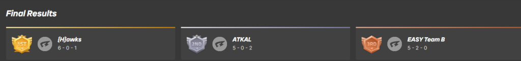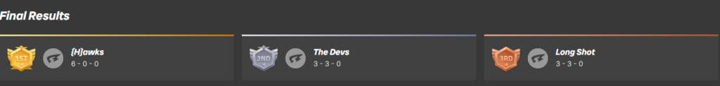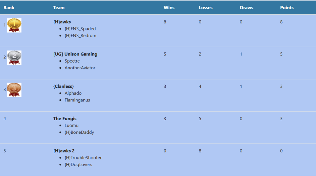 | 1 | {H}awks FNS_Redrum FNS_Spaded | 8 | 0 | 0 | 24 |