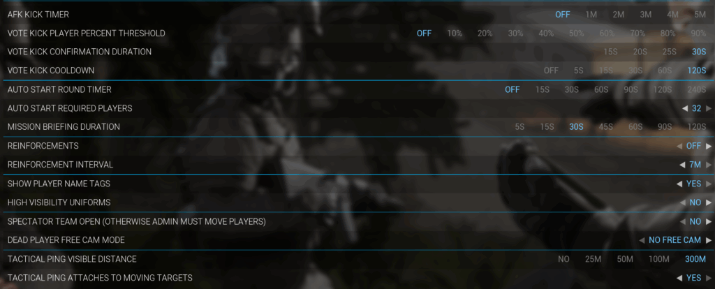 - High Visibility Uniforms NO (player tags ON)
